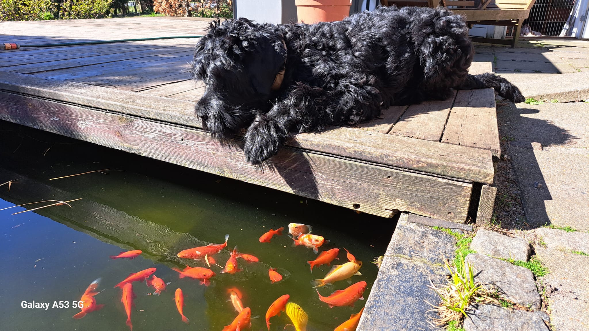 Trotz seines imposanten Erscheinungsbildes ist der Russische Schwarze Terrier ein treuer, familienbezogener und kinderfreundlicher Hund, wenn er gut sozialisiert ist. Er baut enge Bindungen zu seinen Menschen auf und zeigt sich innerhalb der Familie ruhig, loyal und beschützend.
